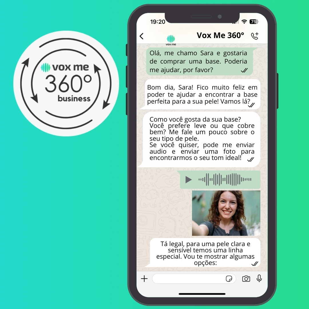Vox Me 360° Business é a solução de chat-commerce inteligente disponível 24/7, pronta para atender seus clientes com a personalidade única da sua marca!